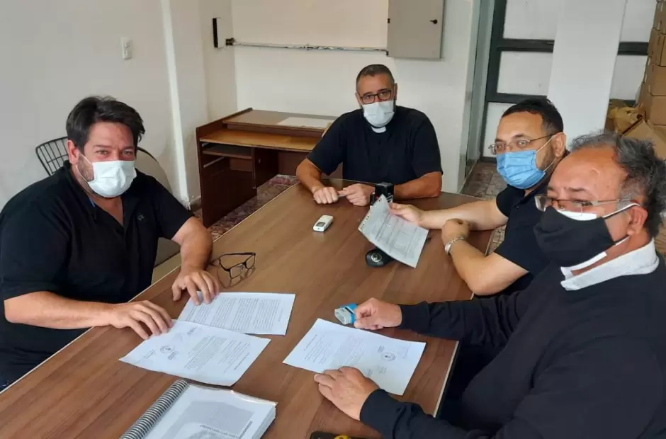 Hoy, se realizó la firma del contrato con la empresa que llevará adelante la primera etapa de la construcción del Colegio Juan Pablo II, ubicado en Choya. Estuvieron presentes en el acto el Vicario Ecónomo, Pbro Daniel Pavón, en representación del Obispado de Catamarca; el Representante Legal de la institución educativa, Lic. Luis Herrera, y su Director General, Pbro Marcelo Amaya; y el arquitecto Sebastián Carena, representante de la empresa constructora.