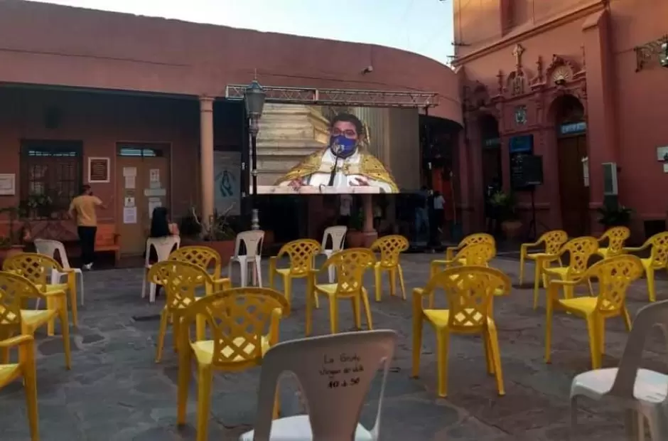 Ayer, se dispuso la colocación de una pantalla en el patio de Catedral Basílica y Santuario Mariano, para que aquellos fieles, que no puedan ingresar al templo, participen de los actos litúrgicos en honor de la Virgen del Valle.