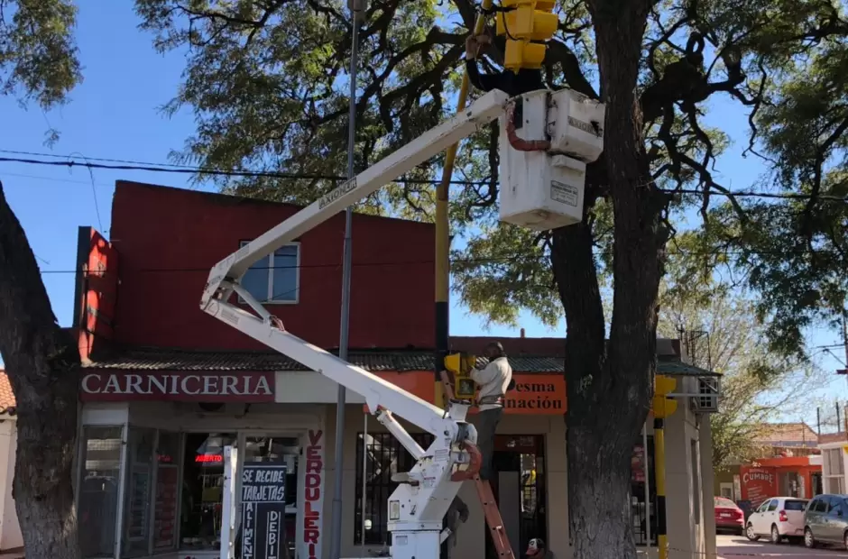 La Municipalidad de Valle Viejo inició los trabajos del sistema de semaforización "onda verde" en la Avenida Presidente Castillo.