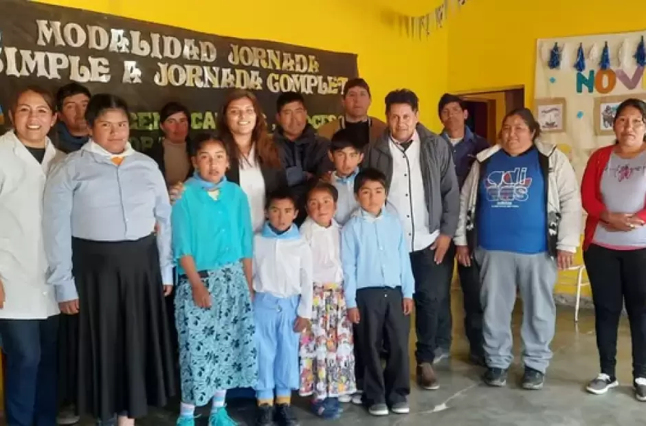 La cartera continúa visitando instituciones educativas del nivel primario para llevar adelante los actos protocolares del cambio de Jornada Simple a Jornada Completa. En esta ocasión, el cambio de modalidad se realizó en la Escuela Primaria N°143 "Ramón Rosa Olmos”, de Cuesta de Vicuña Pampa y en la Escuela N°111 de la localidad de El Cajón, ambas en el departamento Belén, con la presencia del supervisor pedagógico, Carlos Vázquez, el director Horacio Iturriza, alumnos, docentes, personal administrativo y familias.