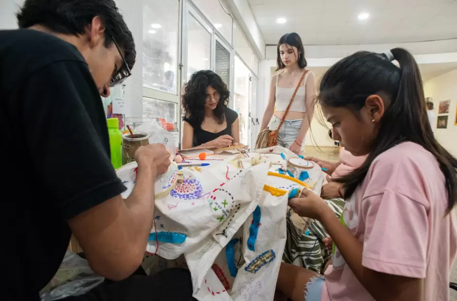 Esta actividad, lleva por título "Insumos para un texto en común", e invita a los participantes a dejar su huella a través de la creación colaborativa de un bordado único. Según explicó Rossana Barbosa, una de las artistas del colectivo, la propuesta tiene como objetivo que las personas escriban una palabra, un deseo o un concepto en papel y luego lo lleven al bordado en una gran tela colectiva. "Nosotras orientamos el proceso, pero es el público quien elige las formas y los colores, creando así una obra en conjunto", agregó.