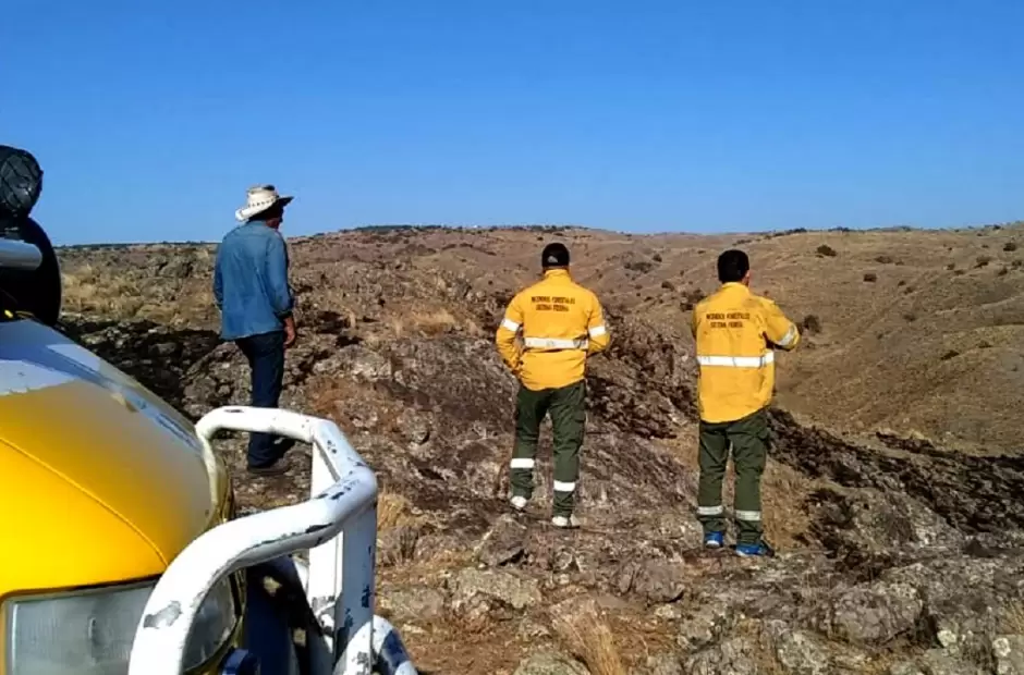Brigadistas realizaron la parte final de un monitoreo y guardia de cenizas de un incendio desatado durante la madrugada del domingo, en el paraje Las Cortaderas, en la localidad de El Taco, departamento Ancasti.