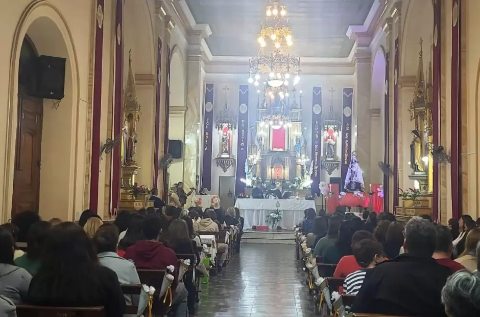 En tanto, este domingo , el templo se vio totalmente colmado con la presencia de egresadas del colegio, destacándose la presencia de quienes cumplían sus Bodas de Plata y de Oro. La Misa fue presidida por el Pbro. Ramón Carabajal, capellán del Santuario Catedral, quien, tomando los textos bíblicos del día, manifestó que Dios siempre nos acompaña y nos invita a nosotros también a acompañar a nuestros prójimos.