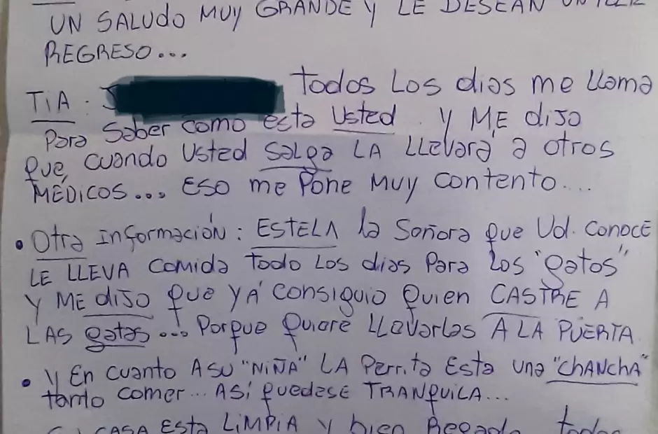 Quien compartió la carta aseguró que la felicidad de Rita al escuchar de sus mascotas era "indescriptible", así como por el amor recibido por su sobrino.