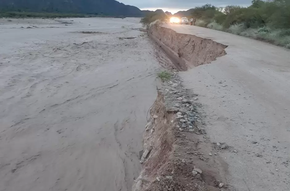 La crecida del Río Belén provocó graves erosiones en la calzada externa de la Ruta nacional 40
