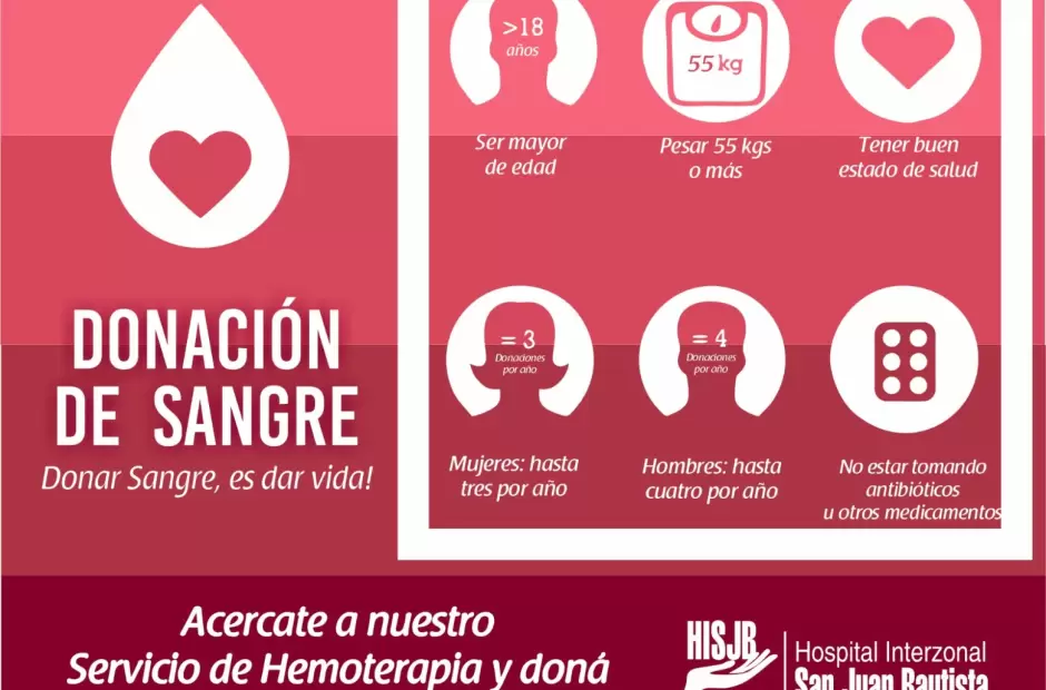 El Servicio de Hemoterapia del Hospital Interzonal San Juan Bautista facilita el acceso a los ciudadanos interesados en colaborar con el sistema de salud. Las extracciones se realizan bajo un cronograma establecido que permite organizar la demanda técnica del organismo: