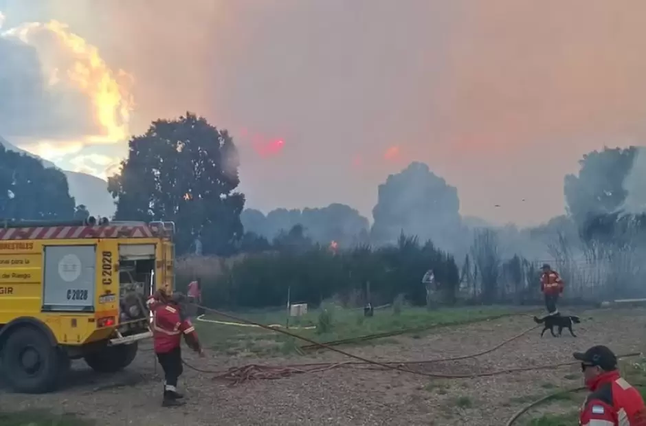 Incendio La Tapera: iniciado el domingo y aún activo. Desde el Comando Operativo informaron que no hubo estructuras ni viviendas afectadas durante el avance nocturno del fuego.