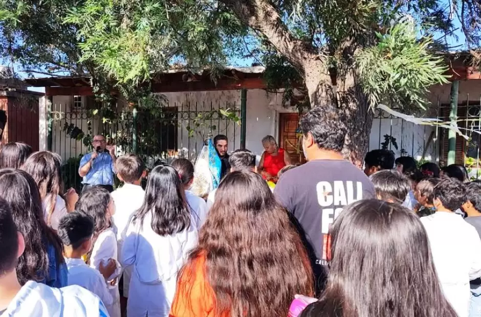 Una jornada especial vivió la comunidad educativa de la escuela secundaria Nº 6 Cacique Juan Chelemín y primaria Islas Malvinas, del barrio Libertador II (Mil Viviendas), con la visita de la imagen peregrina de la Virgen del Valle, en el marco de la preparación para las fiestas marianas de diciembre y del homenaje a las madres.