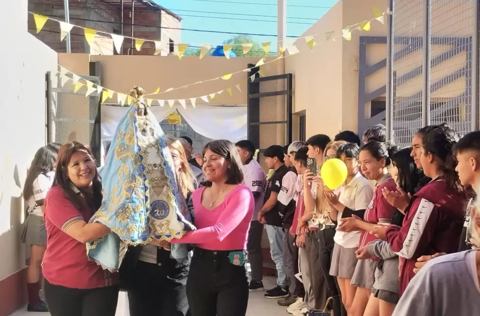 Durante la mañana de este viernes, fue recibida con mucha alegría en la escuela secundaria N° 84 Madres de la Patria ubicada en la zona sur de la ciudad capital. El personal directivo, docente y alumnos de la institución escolar, junto con una delegación de alumnos de la escuela primaria N° 323 Juan Alfonso Carrizo, que funciona en el mismo predio escolar, y algunos vecinos del sector vivieron un momento especial con la llegada de la Ilustre Visitante.