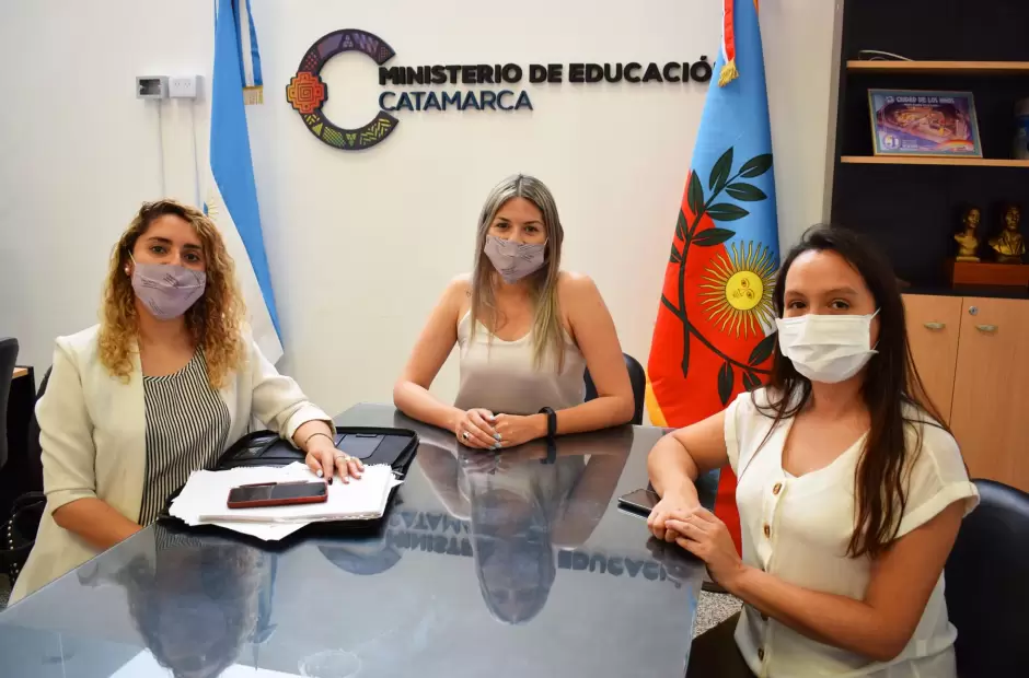 La ministra de Educación, Andrea Centurión, recibió a la coordinadora en Catamarca del Programa “Acercar Derechos” del Ministerio de las Mujeres, Géneros y Diversidad de la Nación, Fernanda Ferreyra Muratore, y a Andrea Segura de PAMI con quienes conversó diferentes propuestas para implementar en las escuelas de adultos.