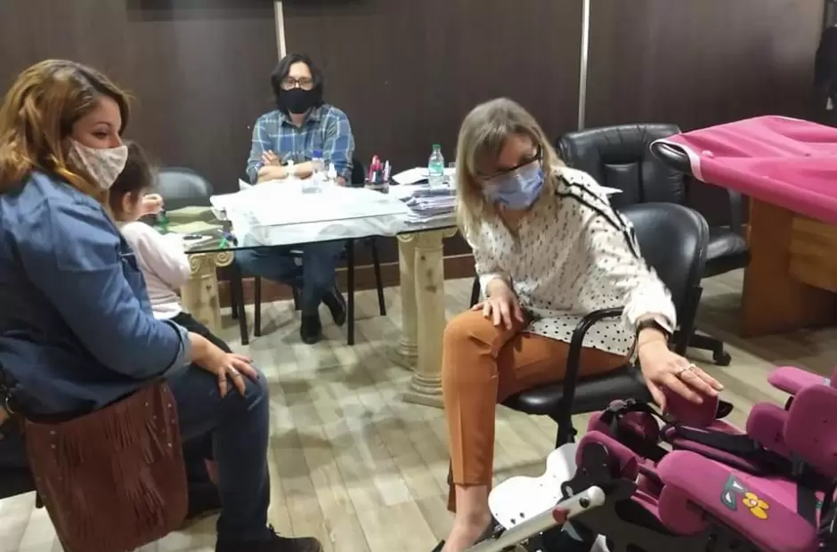 La ministra de Salud, Claudia Palladino, recibió hoy a Cielo y su hijita Luz de 5 años, quien padece mielomeningocele más hidrocefalia. La niña necesitaba una silla de ruedas que le fue entregada por el Programa Federal Incluir Salud, ex PROFE.