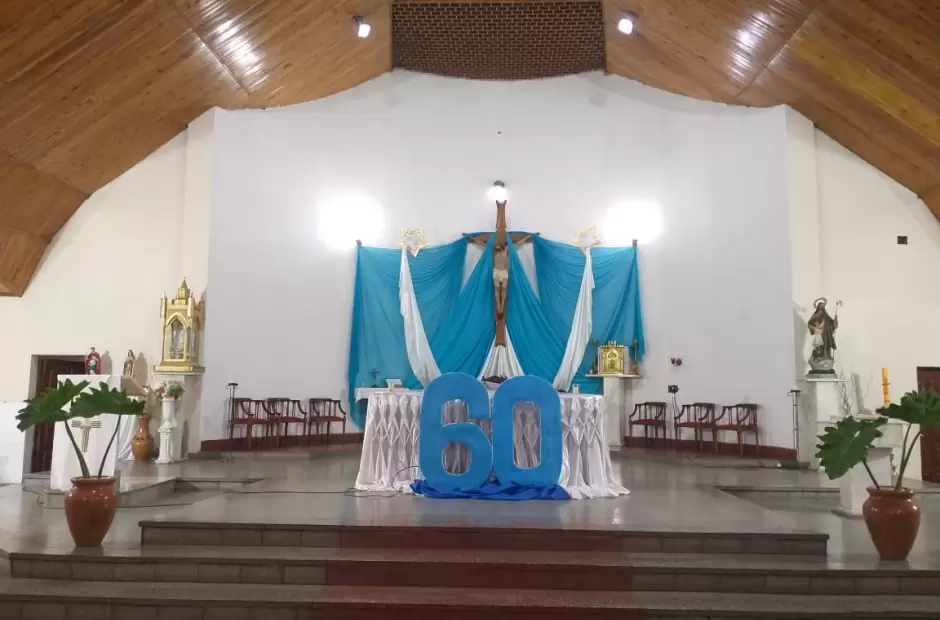 Los actos litúrgicos se iniciaron el miércoles 12 de julio y concluirán el jueves 20, vísperas del cumpleaños, con intenciones especiales para rogar por instituciones, comercios, grupos de la parroquia, consagradas, organismos públicos, vecinos, comunidades que son parte de la parroquia, colaboradores vivos y fallecidos, por nuestro Obispo, y muy especialmente por los párrocos y vicarios que sirvieron en estos 60 años.