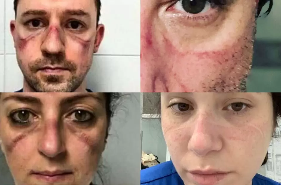 Muchos compartieron imágenes en las que se los ve con las marcas que dejan en los rostros los elementos que utilizan para protegerse y evitar contagiarse durante la jornada laboral.