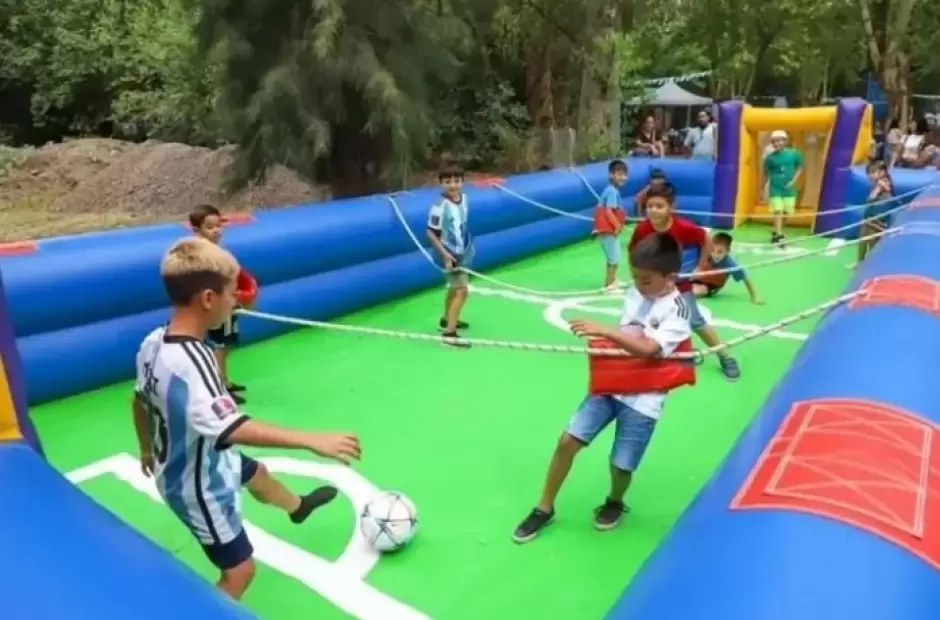 El juego llamado “domar la pelota” gana popularidad entre los más chicos, es similar al famoso toro mecánico, en este caso es una pelota movediza, en la que se debe intentar permanecer la mayor cantidad de tiempo posible sin caerse. A su vez, quienes deseen volver a ver algunos de los tantos más memorables de Messi, Julián Álvarez, Enzo Fernández, y Ángel Di María, pueden acercarse a la pantalla gigante, y sentarse en los pufs en forma de balón frente al escenario para disfrutar de las proyecciones.