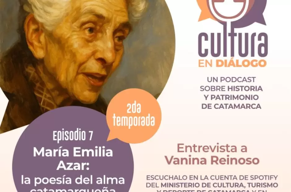 Ya está disponible el episodio 7 del ciclo de podcast Cultura en Diálogo, titulado "María Emilia Azar: la poesía del alma catamarqueña", una entrega que rinde homenaje a una de las figuras más entrañables de la literatura del Norte argentino.