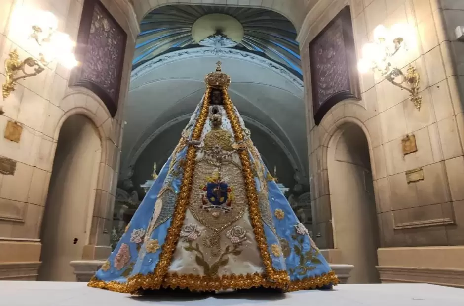 La breve ceremonia se desarrolló de manera privada en el Camarín de la Virgen, y fue presidida por el padre Gustavo Flores, rector de la Catedral Basílica y Santuario mariano, sin la presencia de fieles.