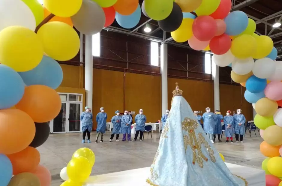La Virgen del Valle en el vacunatorio del Predio Ferial
