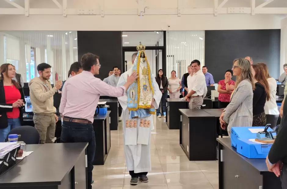 La Madre del Valle permanecerá en el Ministerio hasta las 11:30 de la mañana, en un encuentro que combinó tradición, fe y comunidad laboral.