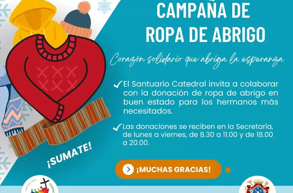 Con el lema "Corazón solidario que abriga la esperanza", la Catedral Basílica y Santuario de la Virgen del Valle lanzó una nueva campaña de recolección de ropa de abrigo destinada a asistir a personas en situación de vulnerabilidad ante las bajas temperaturas del invierno.
