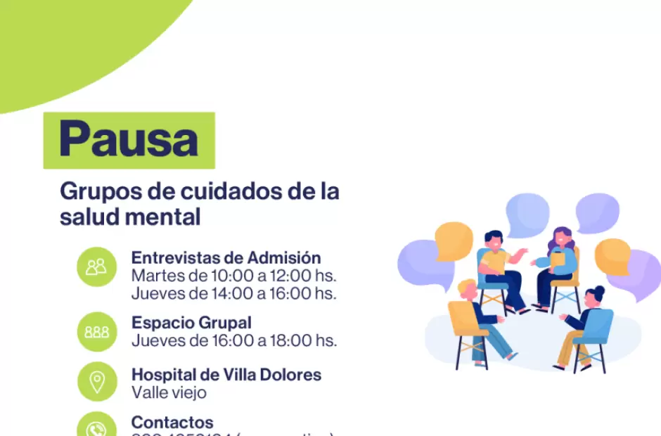 En el marco de las políticas de promoción y cuidado de la salud mental, el Ministerio de Salud de la provincia anunció la creación de un nuevo dispositivo de atención grupal denominado "PAUSA", que comenzará a funcionar en el Hospital "Dr. Dermidio Herrera" de Villa Dolores.