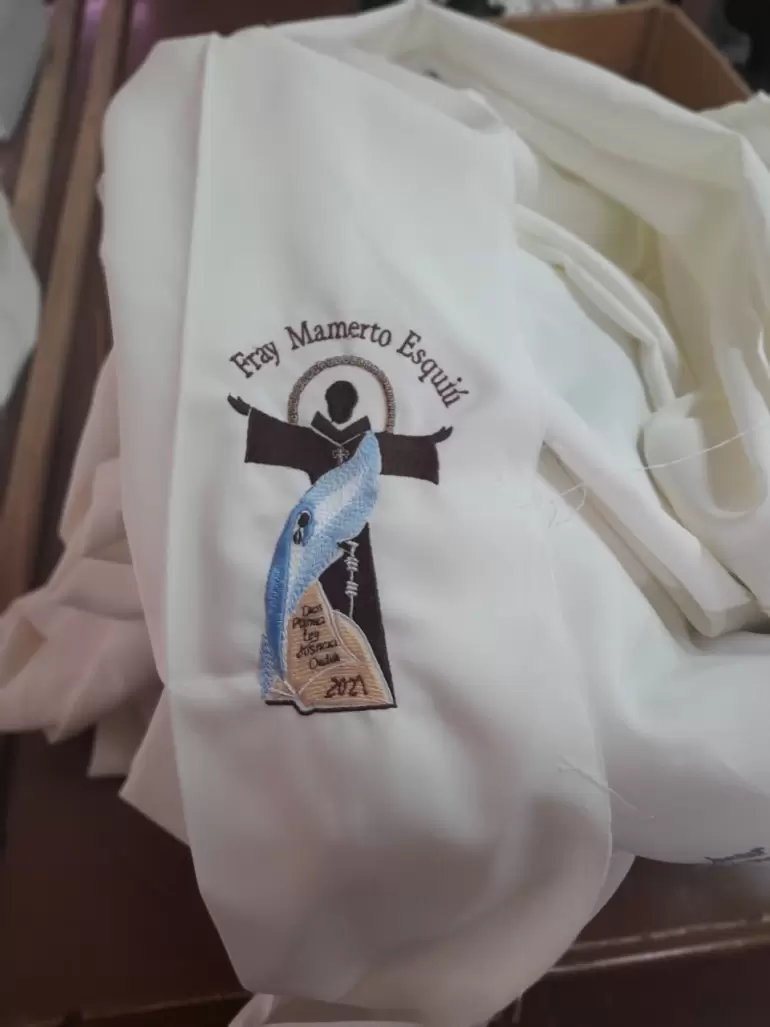 Uno de los momentos más singulares durante este trabajo fue relatado con particular emoción. Sucedió que una de las máquinas de coser tuvo un inconveniente y dejó de funcionar. "Estaba tan preocupada, que le supliqué y por poco le grité: `Hacé algo Fray Mamerto, porque esto es tuyo`. Y la máquina empezó a bordar. Juro que me quedé helada, porque pensé que esto es obra también de él. Allí hay una dimensión del bien que uno no lo ve pero lo percibe. Las obras del Señor siempre salen con la cruz, con el dolor, con la preocupación y con la experiencia de decir que 'esto me supera'. Esto no es algo humano por más que tengas que sentarte a enhebrar una aguja, estamos trabajando aquí por la Iglesia. Cuando caímos en la cuenta ya habíamos empezado a ser amadas por Mamerto Esquiú".