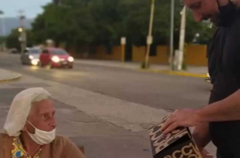 “Volvimos a visitar a Carlina y Fabian, quienes tienen un pequeño puesto de ventas de tortilla a la parrilla, en la esquina de las avenidas Alem y Belgrano. Fuimos a regalarle una zapatillas que nos pidió, cuando hicimos la primer visita”, posteó Marchioli en la red social.