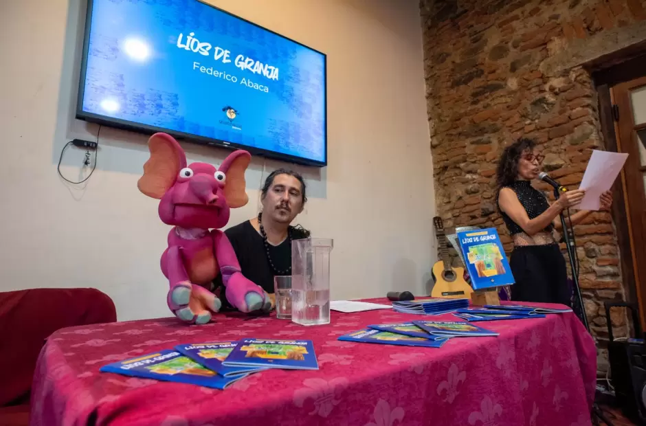 También estuvieron presentes los títeres que forman parte de la obra. Uno de ellos, Armindo, entrevistó al autor y así los presentes pudieron conocer por un lado, parte de la vida de Fede, y por otro, cómo surge Líos de Granja, qué cambios fue recibiendo la obra con el paso del tiempo, y una breve referencia a los 20 años de trayectoria de Chincho Poroto, como se denomina este titiritero.