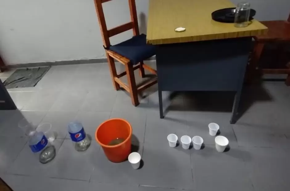 Los empleados, sin muchos recursos, trataron de salvar la situaciíón con valdez, botellas y hasta vasos descartables.