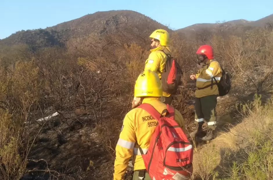 Ahora, bomberos voluntarios de El Rodeo, de Capital y Valle Viejo, junto al personal de la Brigada de Lucha Contra Incendios Forestales y baqueanos, realizan un recorrido por el perímetro a los efectos de asegurar y enfriar la línea.