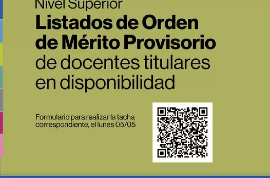Desde el Ministerio de Educación se informó a los docentes inscriptos para el LOM provisorio según Resolución(M.E.C.yT.) S.G.E.N° 24, que se encuentra publicado el Listado de Orden de Mérito provisorio de docentes titulares en disponibilidad. El mismo, podrá ser consultado en: https://acortar.link/0MFQgJ