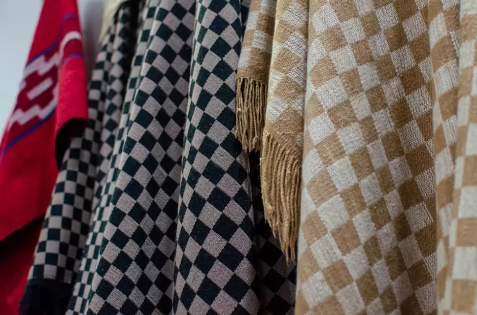 El proceso de convertir la lana en hilos es completamente artesanal: comienza con la selección de la materia prima, el descerdado -método para separar las fibras más largas y gruesas de las más finas y cortas-, y la limpieza del vellón hasta dejarlo preparado para ser hilado a mano con huso o rueca. Una vez listo, se tiñe hasta adquirir el color deseado, se prepara el urdido en el telar con la cantidad adecuada para cada prenda, para luego comenzar a tejer.