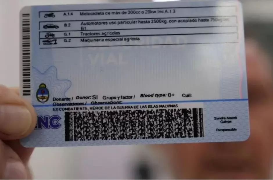 En la misma se destaca que el organismo tiene entre sus facultades la de establecer las características y el procedimiento de otorgamiento, emisión e impresión de la Licencia Nacional de Conducir. Y recuerda que la identificación de los veteranos ya se aplica en el documento nacional de Identidad desde 2014.