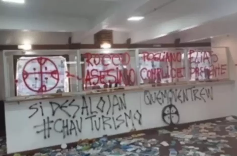 Según indicaron testigos en el lugar, los manifestantes generaron destrozos, pintaron la oficina con consignas, y se robaron computadoras, radios de montaña y cámaras de seguridad. “Si desalojan, chau turismo”, fue una de las amenazas que estos grupos escribieron con aerosol en las las paredes y ventanas del edificio.