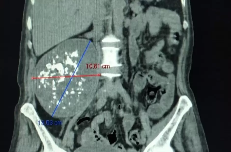 “Ni bien recibimos a la paciente, hace una semana atrás, la compensamos y tomamos la decisión quirúrgica dada la necesidad de realizar cuanto antes la exéresis del tumor retroperitoneal paravertebral gigante que presentaba. Esta lesión se alojaba en todo el hemiabdomen y retroperitoneo derecho de la paciente, involucrando grandes vasos sanguíneos del colon, riñón y ureter, por lo que requerimos de la participación activa del Servicio de Cirugía Vascular”, destacó el Dr. Santiago Ravetti, Jefe del Servicio de Cirugía Oncológica y de Cabeza y Cuello.