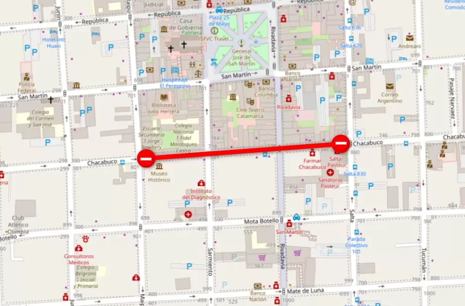 Por tal motivo, se indica desde el organismo provincial que los colectivos qui circulan por la calle Chacabuco serán desviados por la calle Mate de Luna hasta la calle Salta.