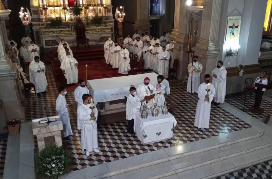 El obispo Luis Urbanc, presidió el martes por la noche la Misa Crismal a los pies de la Madre del Valle, que fue concelebrada por todos los sacerdotes de la Diócesis de Catamarca, quienes en horas de la mañana participaron de la Asamblea del Clero, en un clima fraterno y de reflexión preparándose para vivir ésta y las demás celebraciones de la Semana Santa.