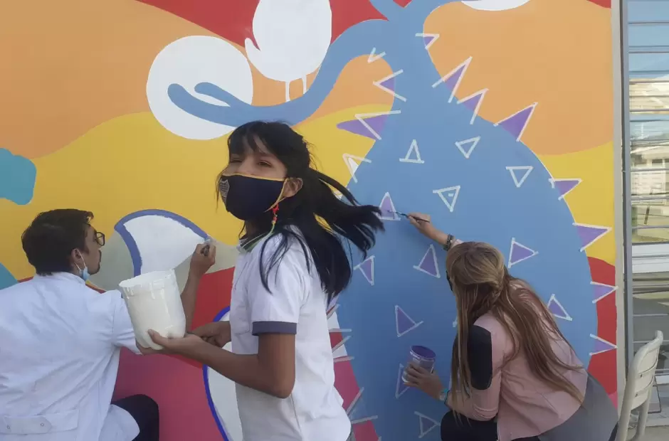 El proyecto surgió como una propuesta para trabajar junto a los jóvenes para embellecer los espacios del centro educativo con murales coloridos en los espacios comunes para que sean compartidos por todos los estudiantes que concurren al mismo.
