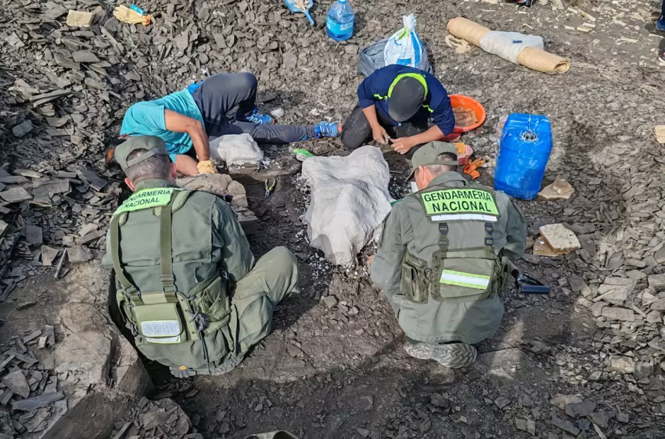 Los gendarmes del Escuadrón 31 Las Lajas "Gend. Juan Carlos Treppo" brindaron apoyo al personal de la Dirección Patrimonio Cultural de la provincia de Neuquén tras la alerta de un propietario de un campo, situado en el paraje "Mulichinco" localidad de Loncopué, quien advirtió la presencia de restos fósiles en el terreno.