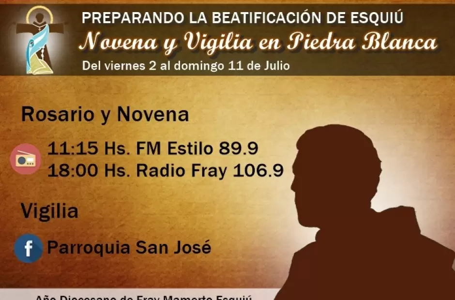 Como parte de las actividades de preparación para vivir la ceremonia de beatificación del Venerable Siervo de Dios Mamerto Esquiú, hoy 2 de julio da inicio la novena en su honor en Piedra Blanca, su tierra natal.