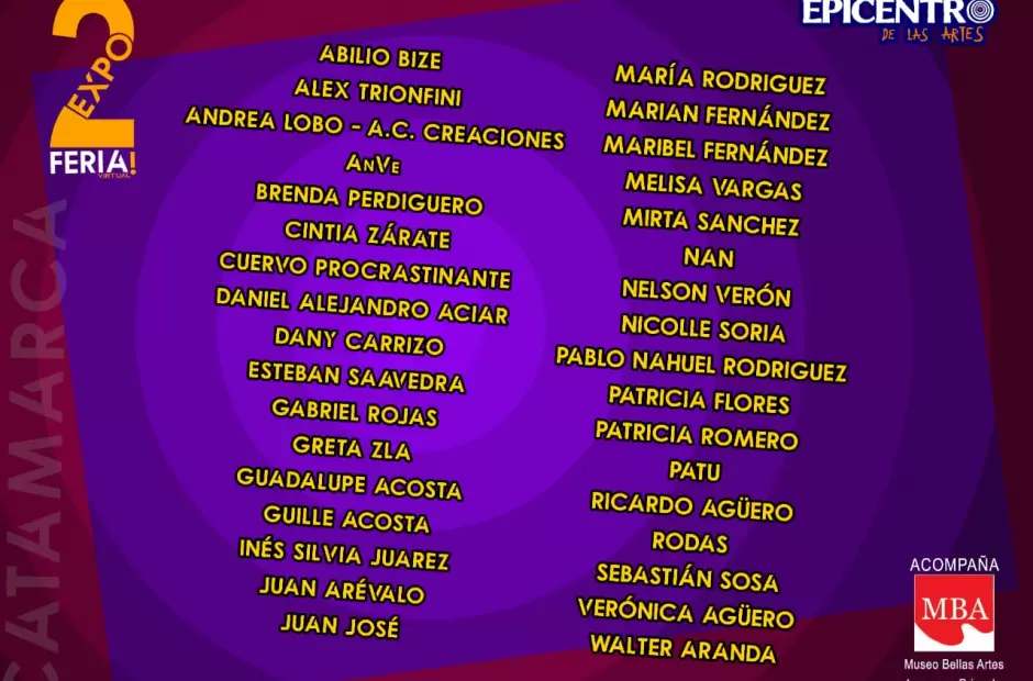 Para visitar las Expo Feria “Epicentro de las Artes”, ingresar al grupo de Facebook ARTISTAS VISUALES CATAMARCA (https://www.facebook.com/groups/1553659758224986/).
