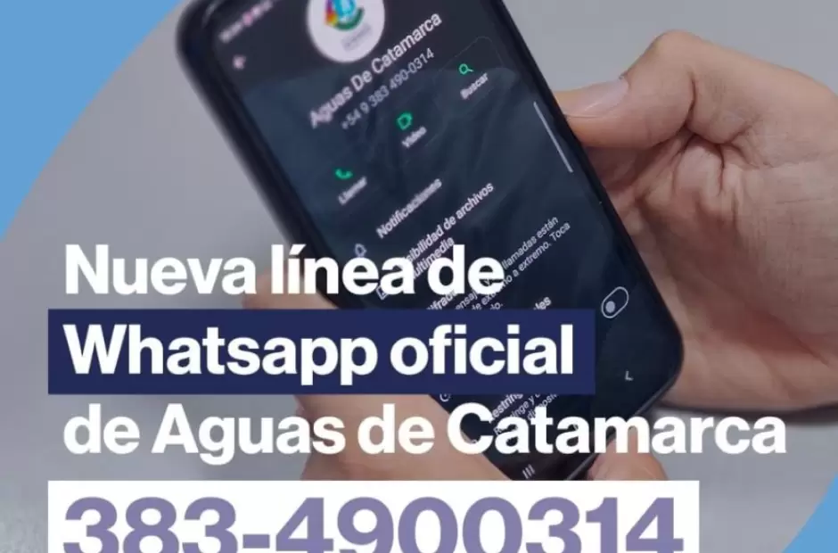 Aguas de Catamarca SAPEM indicó que continúa trabajando en estrategias y herramientas para brindar mayor y mejor accesibilidad a la comunidad y sus usuarios. Por este motivo, desde la empresa proveedora del servicio de agua y saneamiento se habilitó una línea de Whatsapp para que los usuarios puedan realizar sus consultas o reclamos al número 383-4900314