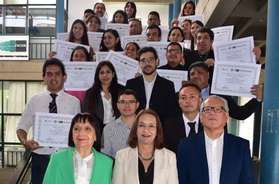 La decana instó a los profesionales a que "en estos tiempos difíciles sigan teniendo esa fuerza para seguir capacitándose. Ustedes son esa fuerza que lleva el conocimiento a nuestros jóvenes y responsables de la gran transformación que necesita la provincia de Catamarca en educación".