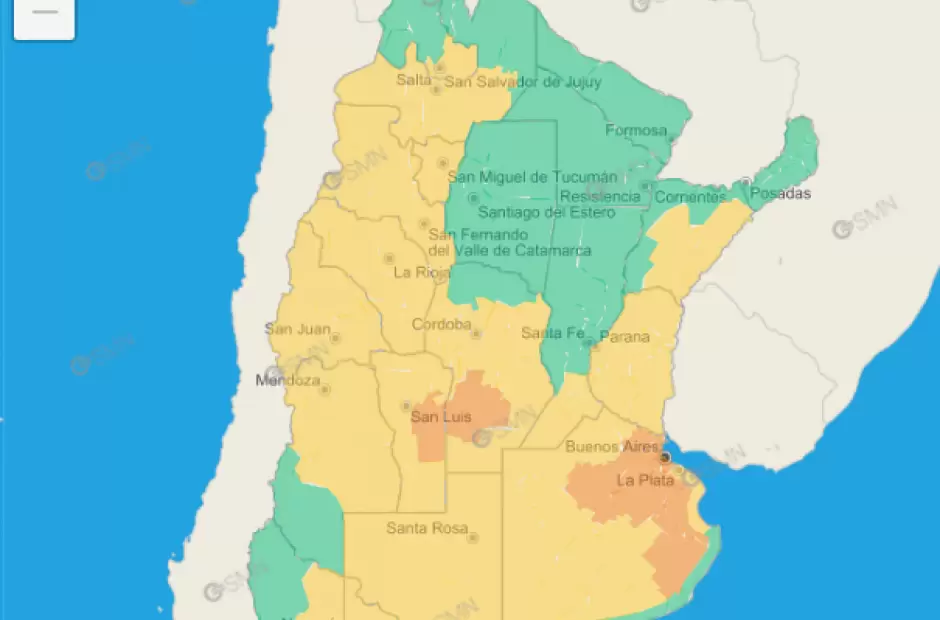 De acuerdo con el pronóstico publicado por el Servicio Meteorológico Nacional (SMN), la advertencia regirá en Buenos Aires, La Pampa, Córdoba, Santa Fe, Entre Ríos, Corrientes, San Luis, San Juan, La Rioja, Catamarca, Tucumán, Jujuy, Salta, Mendoza, Neuquén, Río Negro, Chubut, Santa Cruz y Tierra del Fuego.