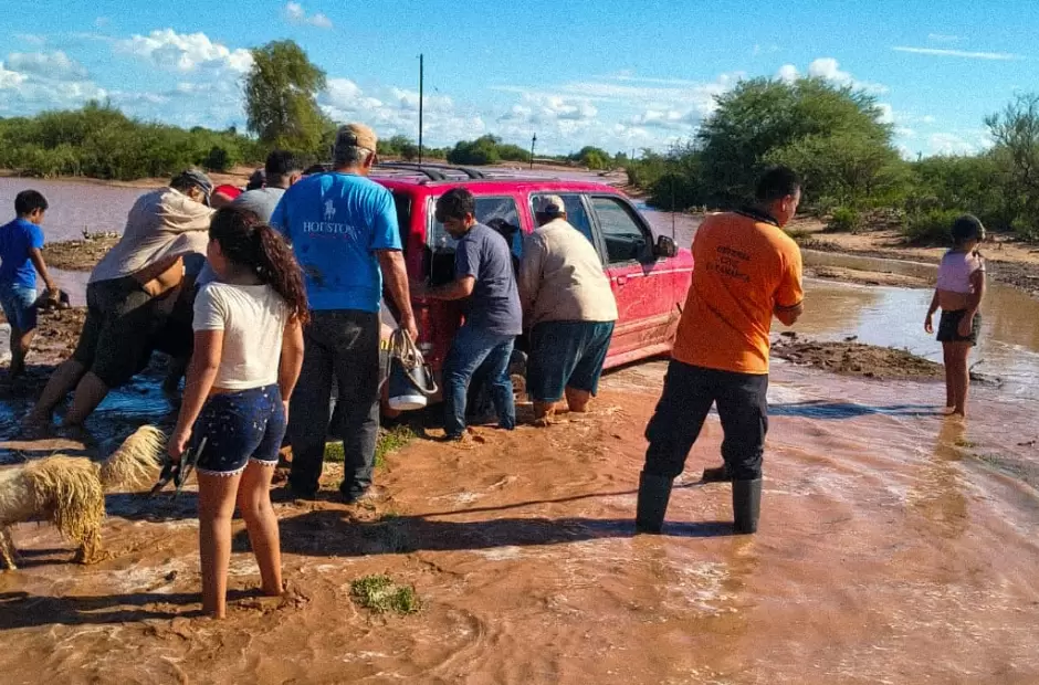 Oeste y Puna: En Tinogasta, Santa María y Aconquija se registraron rescates de personas y vehículos que habían quedado atrapados por las correntadas.