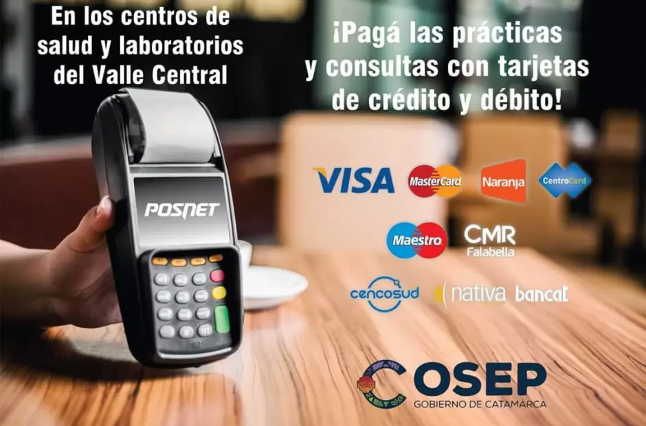 La Obra Social de los Empleados Públicos (OSEP) pondrá en funcionamiento el pago con tarjetas de crédito hasta en 3 cuotas sin interés para el cobro de coseguros y medicamentos en los diferentes centros de salud, laboratorios y consultorios que cuenten con el sistema POSNET.