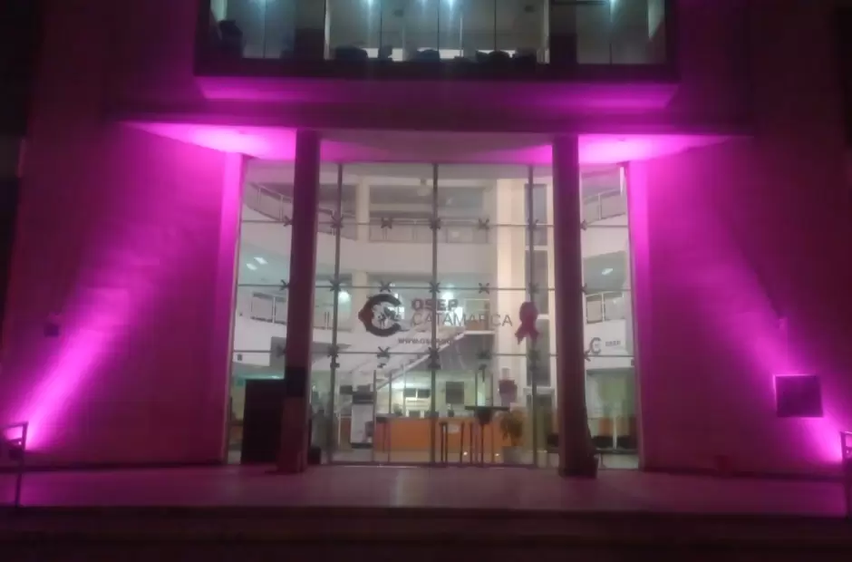 A esto se suman más acciones para crear mayor conciencia y visibilizar la causa como la iluminación de color rosa de la fachada del edificio de OSEP y un lazo rosa en su puerta principal, símbolo internacional del cáncer de mama.