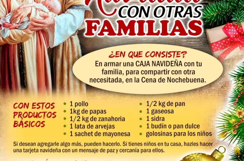 “No queremos dejar pasar este año sin este último gesto de amor y solidaridad a las familias que más lo necesitan. Compartir una cajita navideña con otra familia sería un hermoso regalo para el Niño Dios”, expresaron desde la comunidad parroquial.