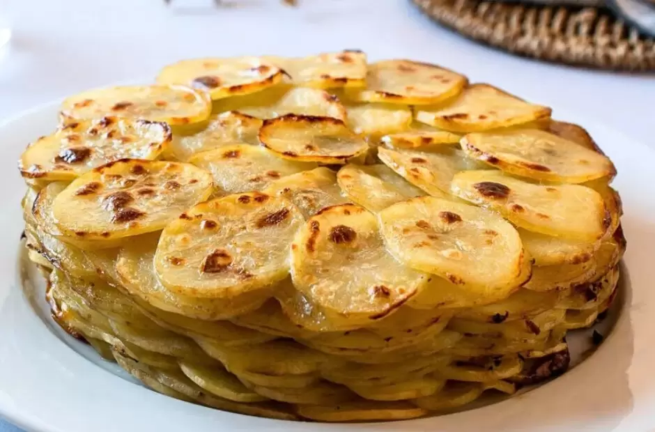El milhojas de papas tiene una textura tierna y cremosa y un sabor suave increíble. Entre los ingredientes de la receta se encuentran: crema de leche, queso, papas y panceta o cebolla. Pero tiene mil versiones, ya que se puede usar jamón cocido en lugar de panceta y huevo o salsa de tomate en lugar de crema de leche.