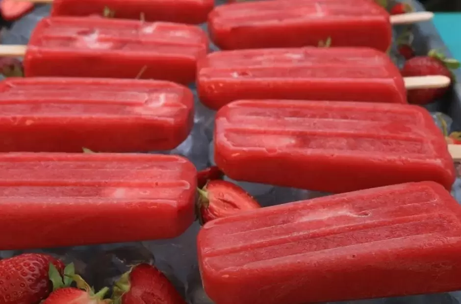 Tener guardado en el freezer unos palitos de helado de frutilla al agua y sorprender sobre todo a los más chicos, es un plan perfecto que no falla.