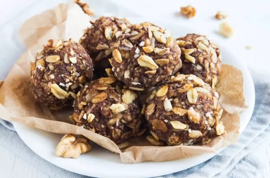 4. Con la ayuda de una cuchara, forma bolitas con la preparación y rebózalas en cacao en polvo, coco rallado o frutos secos picados.